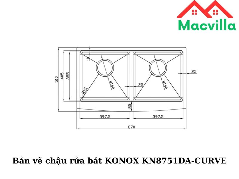 Bản vẽ chậu rứa bát KONOX KN8751-CURVE