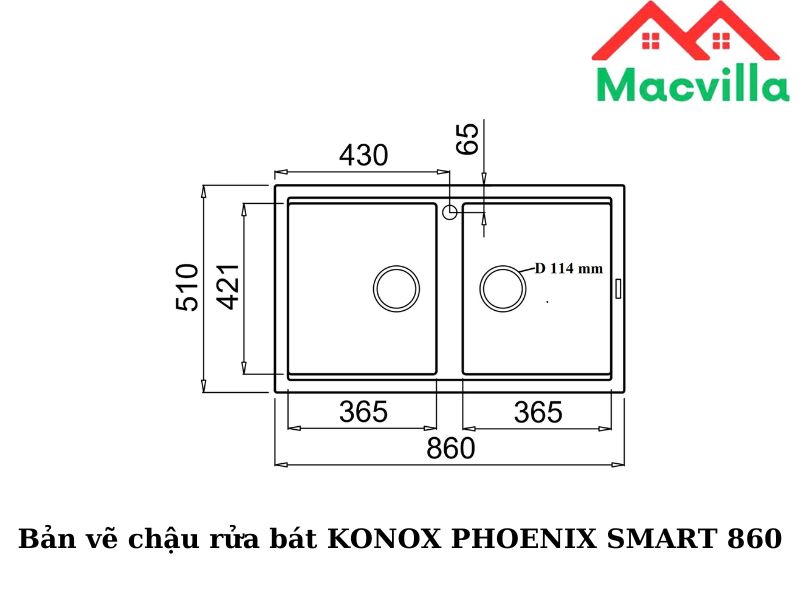 Bản vẽ chậu rửa bát KONOX PHOENIX SMART 860
